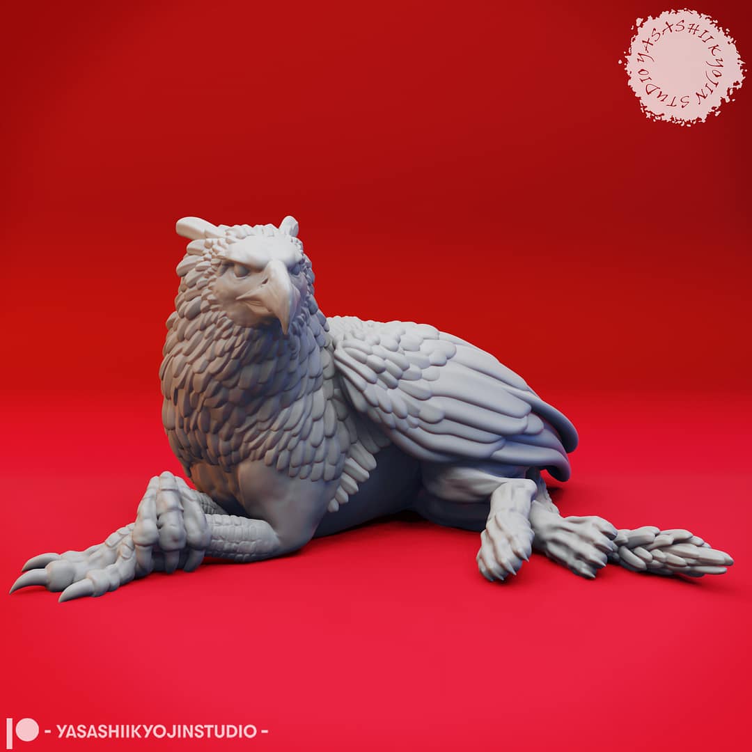 Poised in a regal resting position, the Laying Griffin exudes nobility and calm strength. Wings folded neatly, gaze alert and intelligent, this sculpt is ideal for narrative setups or as a majestic NPC guardian.