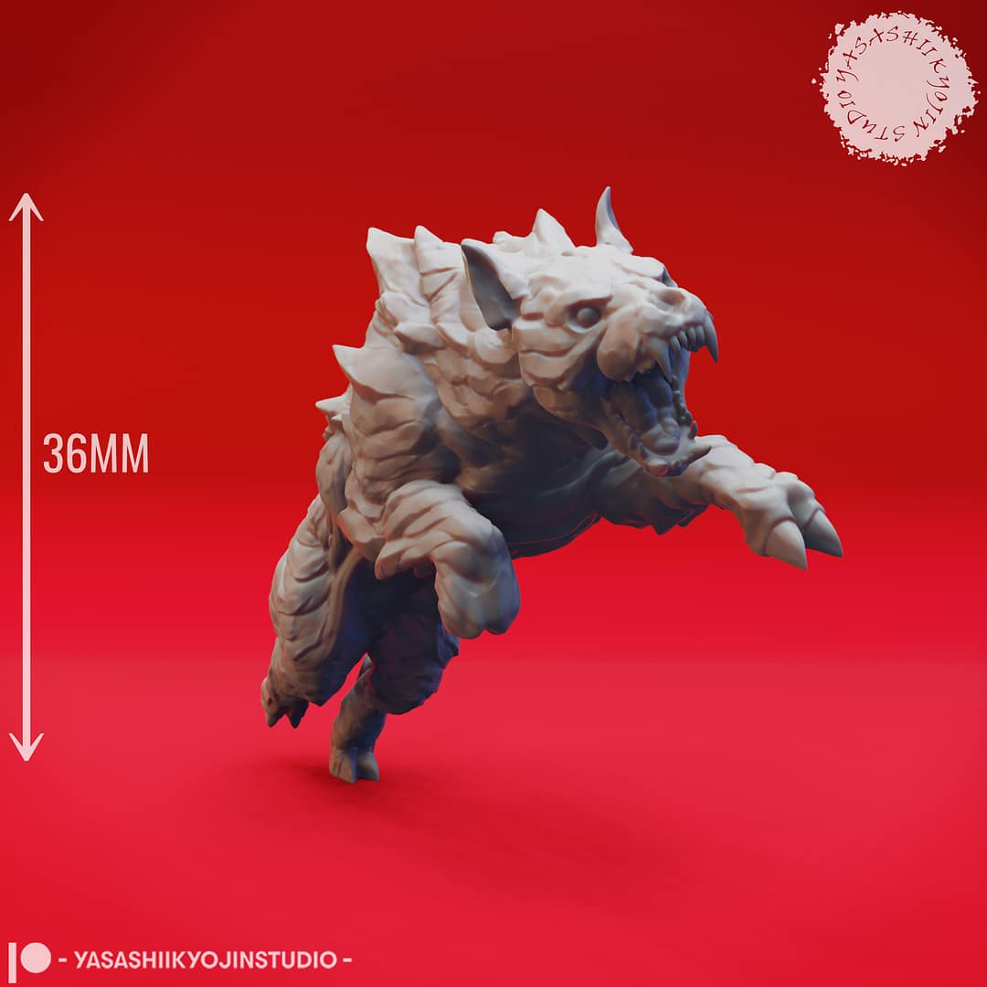 And now, Yasashii Kyojin Studio brings these terrifying creatures to the tabletop with a sculpt that embodies their raw ferocity. Each pose showcases a different predatory behavior, allowing you to tailor your encounters to the flavor of your story—or unleash all four for a full infernal pack.